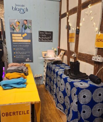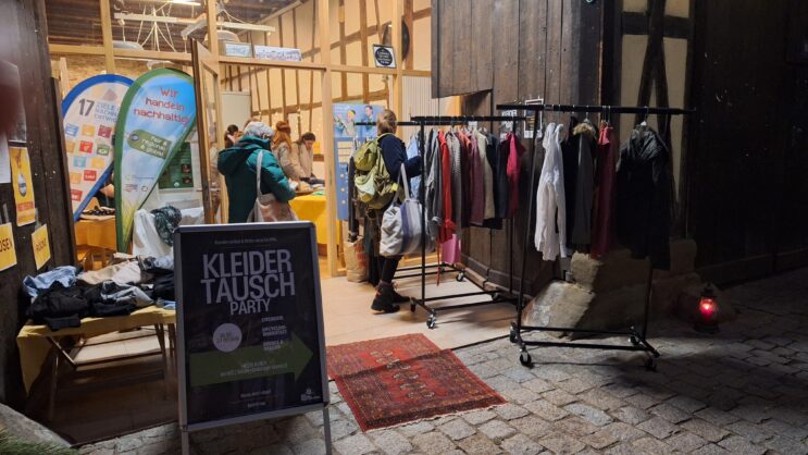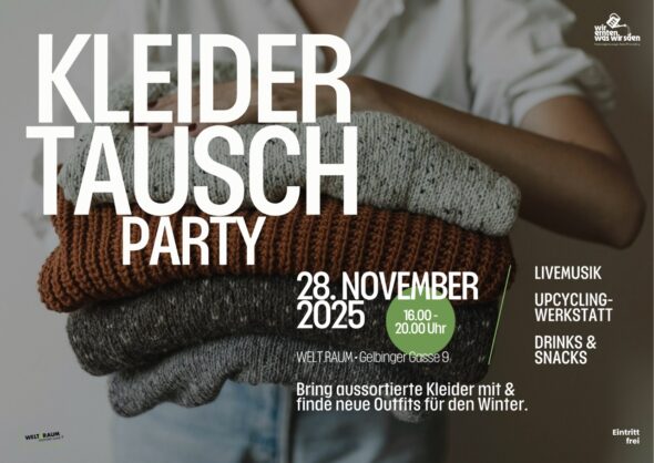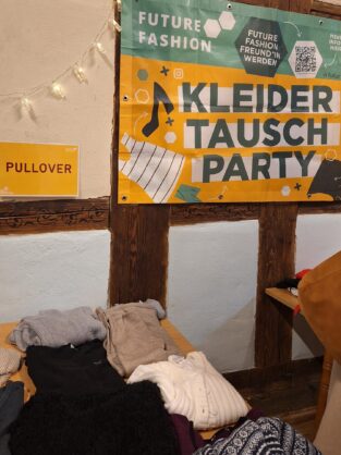 Die Kleidertauschparty mit ihrem Begleitprogramm – Musik, Siebdruckangebot und recycelte Geschenkverpackung – wurde gut angenommen. Qualitativ gute Kleidung wechselte die Besitzer und Gelegenheiten für einen netten Plausch bei warmem Punsch und leckeren Häppchen waren auch gegeben.
