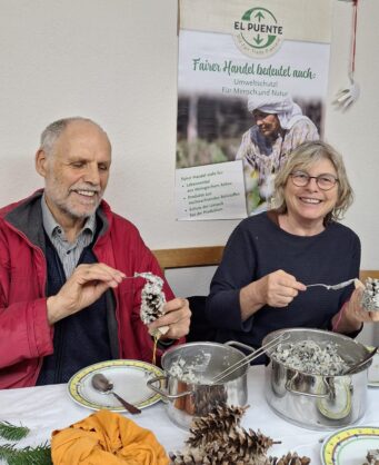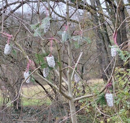 Außerdem konnten Vogelfutterzapfen selber hergestellt werden. Sie sind bei den Vögeln heiß begehrt und schmücken die laublosen Bäume und Sträucher.